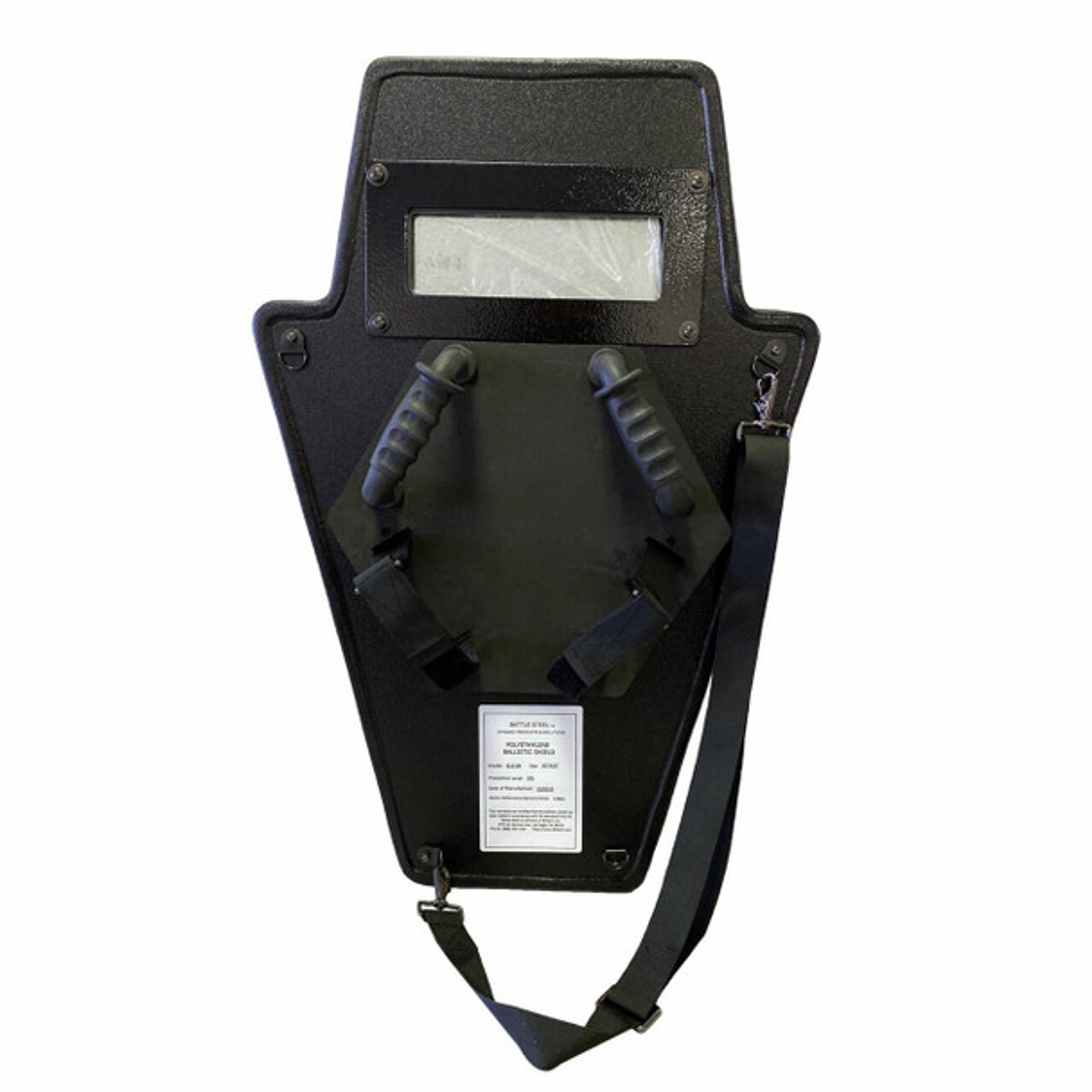 The BattleSteel 30x20 Level IIIA+ Shield with View Port is a high-performance ballistic shield designed to offer maximum protection in critical situations. Tested to NIJ Level 3A standards against 9mm and .44 Magnum rounds, this shield also provides added safeguard against extra hi-velocity rounds. Constructed with Polyethylene ballistic material, it features a V-Shape design for increased coverage. Weighing 11 lbs and with a thickness of 12mm, this shield offers excellent mobility without compromising on protection. The exterior Polyurea coating enhances durability, while the 5-year warranty ensures long-lasting performance. Please note that federal and state laws apply to the purchase of body armor.