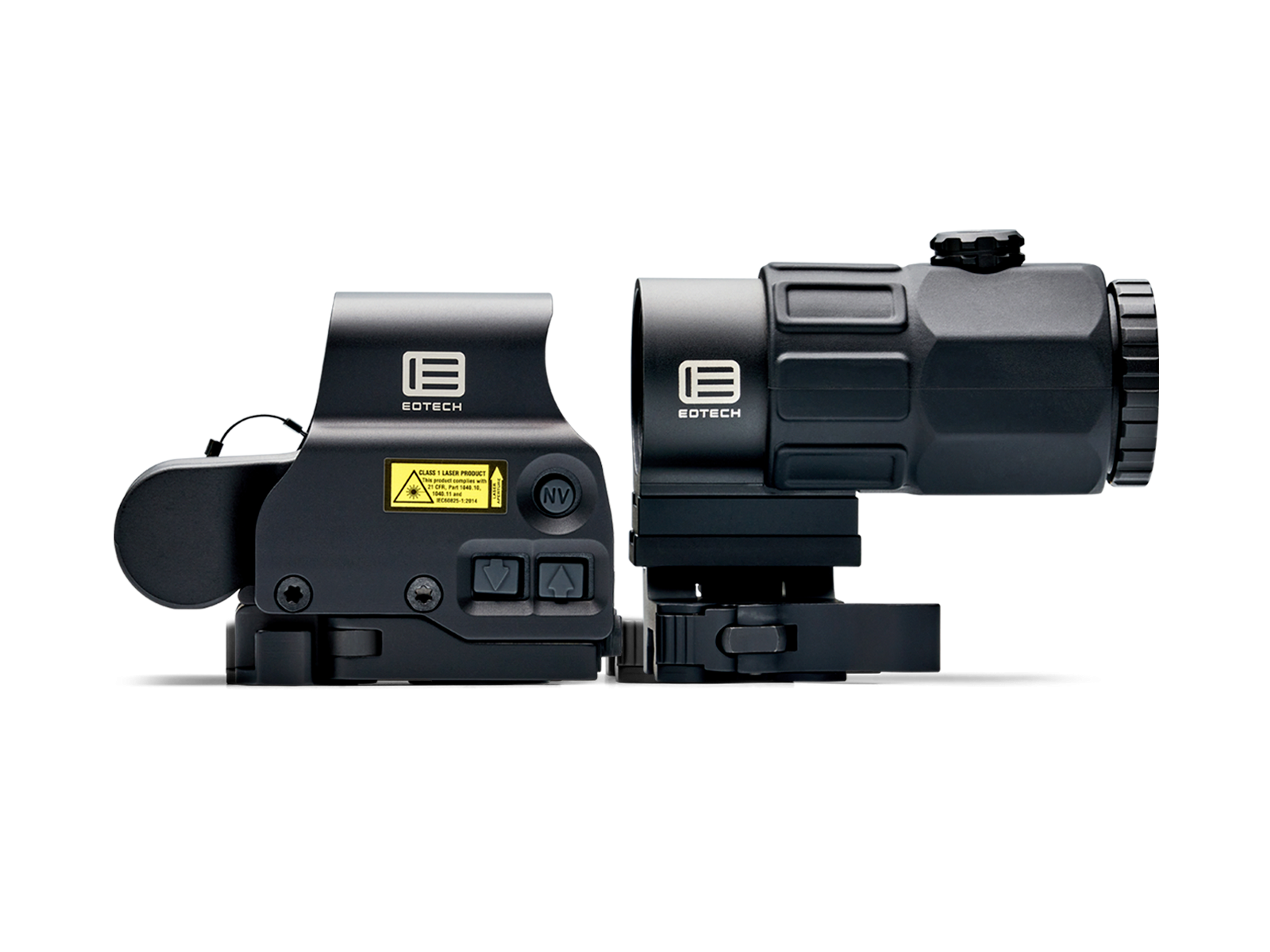The Holographic Hybrid Sight V (HHS V), featuring a EXPS3-4 with a G45 magnifier combination is the perfect solution for Close-Quarters Combat situations as well as 600-meter targets. Instant transition is achieved through a Switch-To-Side (STS) mount that offers a simple and quick disengagement of the magnifier. This durable night vision-compatible system offers wide field optical performance for visibility in extreme low-light conditions.
