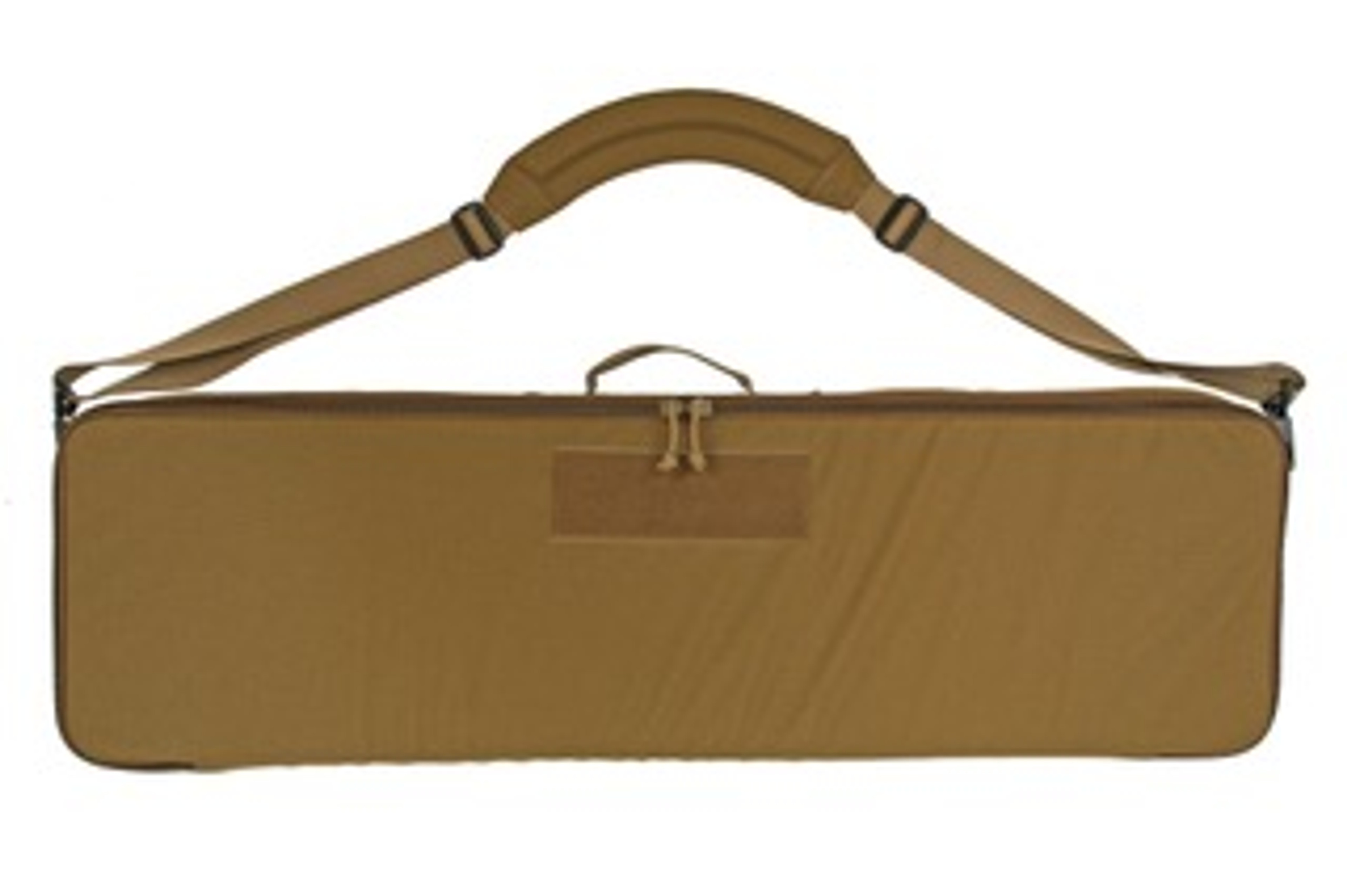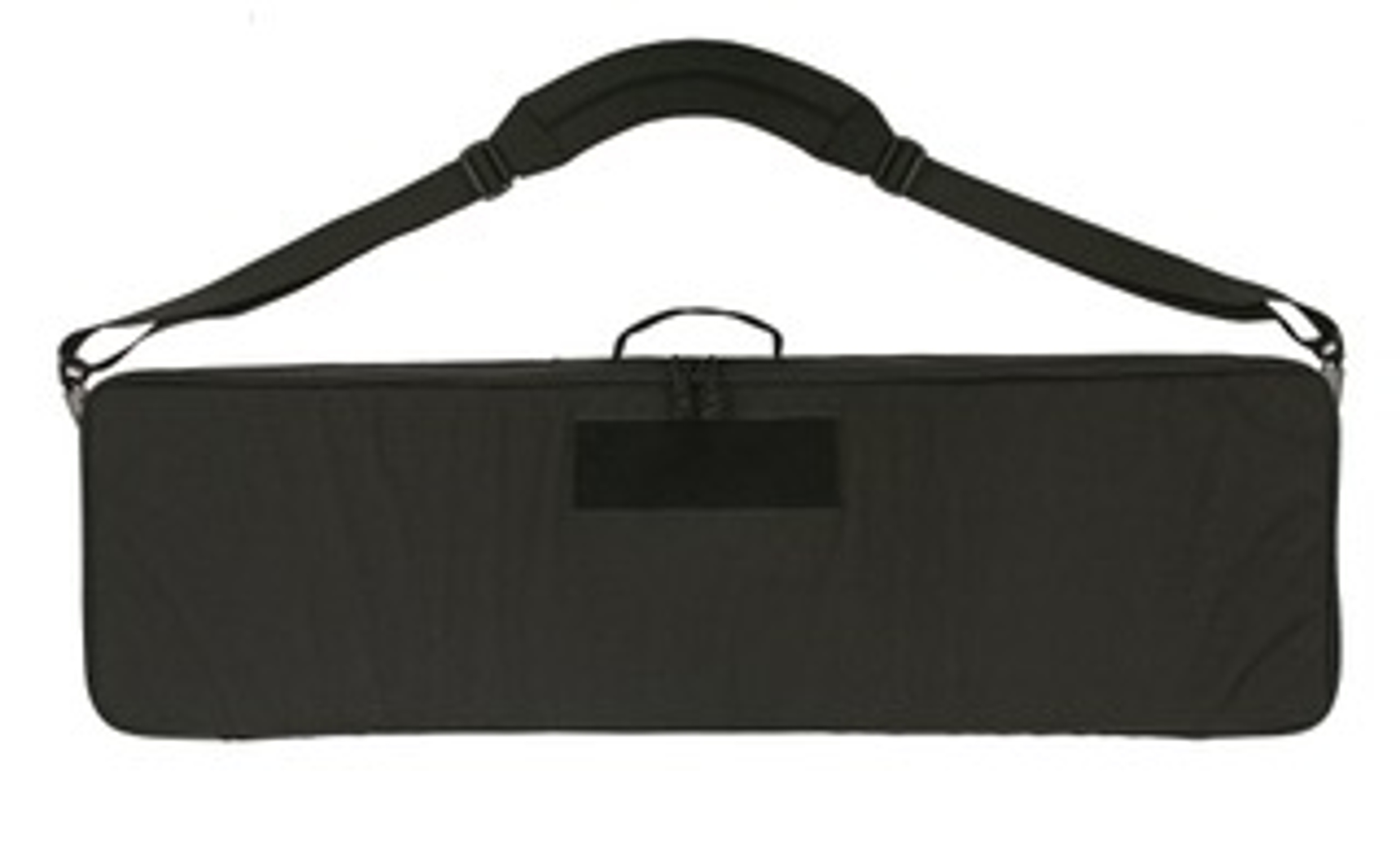There are 2 attachment points on either end of the bag for attaching the carrying strap that is included. The front of the bag features a 8X3 inch loop field to attach patches. The inside if the lid has two zippered mesh pockets to store loose items, cleaning kit, mags, ECT. Inside of the body of the bag is covered in loop. this allows the three provided attachment panels to be used in an infinite number of placements to hold any 38 inch or shorter rifle in place or to store a longer rifle in 2 pieces. There are two additional flat tie downs to secure a smaller item in the bag, such as a hand gun or spotting scope.