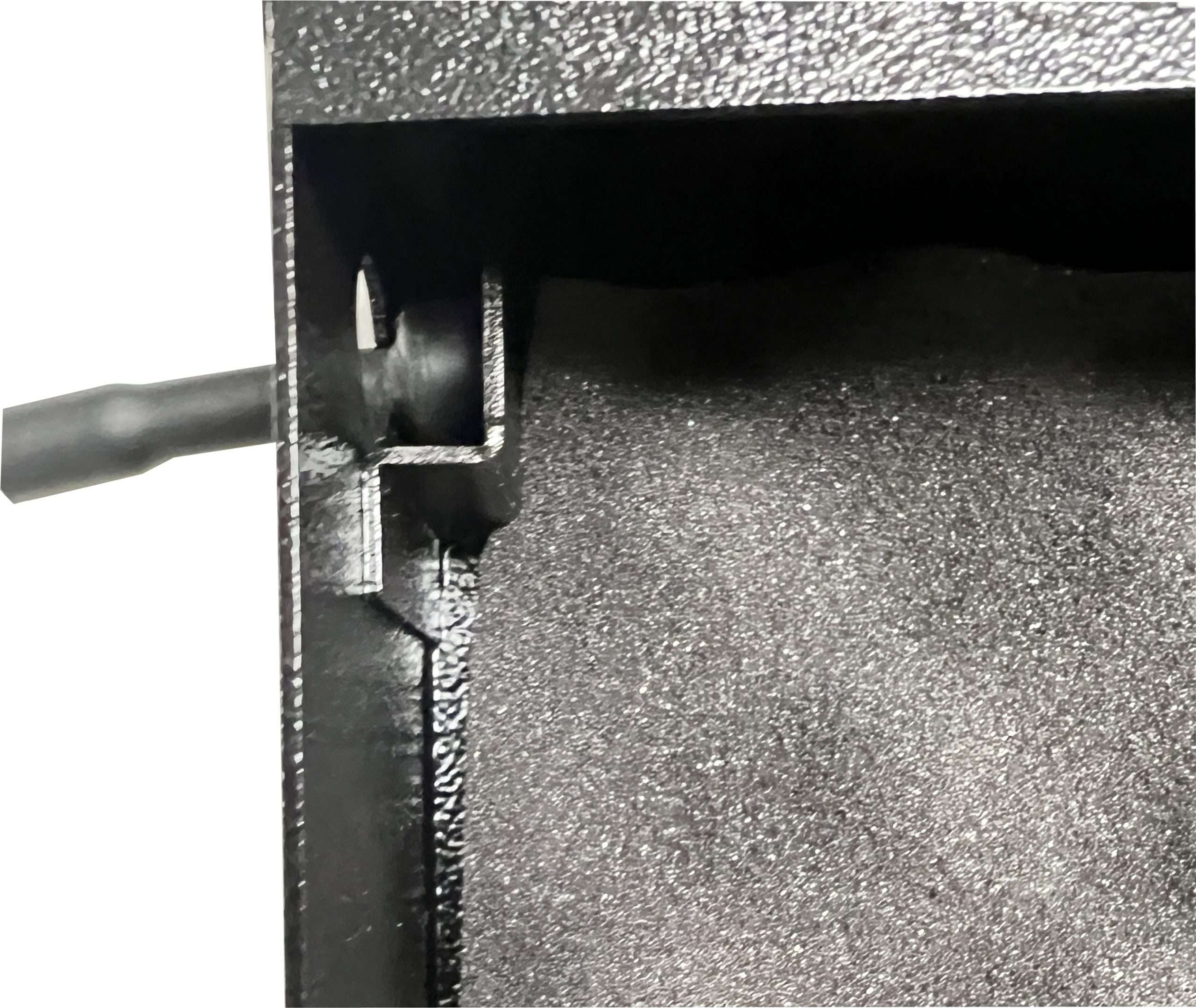 - Powder coated finish in textured low gloss black.